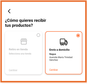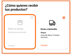 - “Retiro en tienda” te permitirá seleccionar la tienda que estará preparando tu orden para que la puedas pasar a recoger.