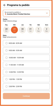 En ambos casos debes informar en esta sesión si deseas Comprobante Fiscal o no para esta orden. Una vez hayas introducido todos los datos requeridos, pulsa Siguiente. Cuando termines de hacer tu compra, podrás seleccionar el día y rango de horarios que prefieres, o en el que prefieras pasar a buscar tu compra por la tienda que seleccionaste.