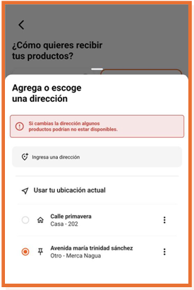 - Si deseas continuar con el cambio en el método de entrega y eliminar los productos no disponibles, presiona “Sí”, de lo contrario;