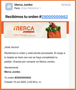 - Confirmación de Orden: ¡Ya has realizado la compra! Recibirás un correo que confirma la tramitación correcta del pedido y te muestra tu número de orden.